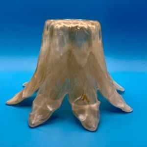 MURANO Art Glass Petal Bowl Candle Holder L7xH4" Vase Orange White Swirl Italy