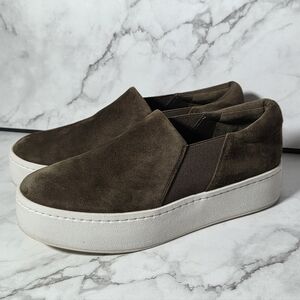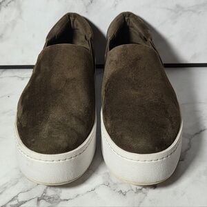Vince Warren Suede Slip On Platform Sneakers Olive Green Size 6
