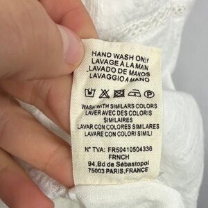 This Anthropologie FRNCH Arina dress is a dreamy blend of modern boho and vintage romance. Crafted in crisp white with delicate lace accents, this midi-length peasant dress features a flattering tiered silhouette, subtle puff sleeves, and a defined waistline. Perfect for bridal showers, summer getaways, or effortless everyday elegance. The lightweight fabric and feminine detailing make it a go-to piece for warm weather styling. Size small — please check measurements before purchasing.