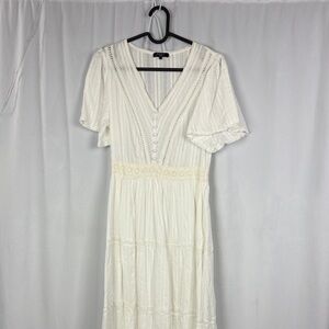 Anthropologie FRNCH NWT White Arina Midi Dress Bohemian Peasant Tiered Lace - S