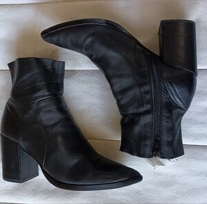 Step out in style with these sleek black leather ankle boots. Perfect for any occasion, they offer both comfort and elegance.