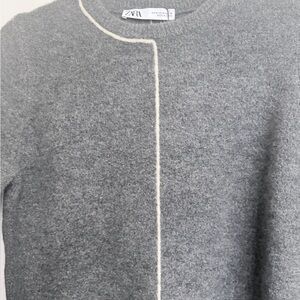 NWT Zara Charcoal Crew Neck Sweater with Contrast Piping