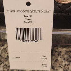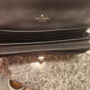 This wallet is the Kate Spade New York Natalia Large Flap Turn-Lock Wallet in black quilted leather. This style features a smooth quilted leather exterior and a distinctive silver-tone spade turn-lock closure on the front flap. It is absolutely soft leather and gives off "Chanel" vibes as it looks very high end! It is new with tags and retails for $249!