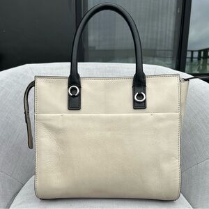 Made of high quality Italian leather. Pre loved. There are marks on the exterior, interior is clean. All zippers are zippy