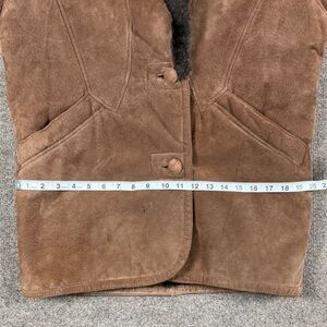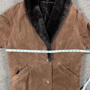 Vintage Brown Genuine Leather Fur Lined Coat Women’s S Fur Shawl Collar Jacket