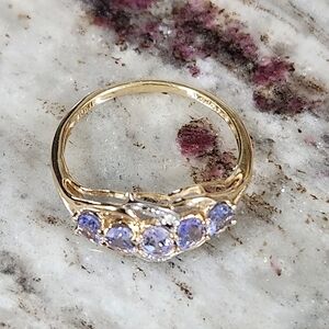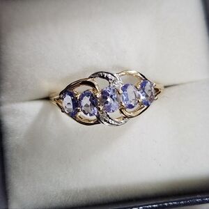 So Pretty! 14K Solid Yellow Gold Natural 5 Stone Tanzanite & Diamond Ring Sz 7