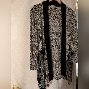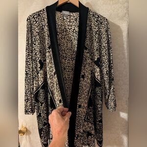 Travelers by Chicos Sz.3 (CHICOS SIZE)Black Gray Paisley Open Tunic Jacket