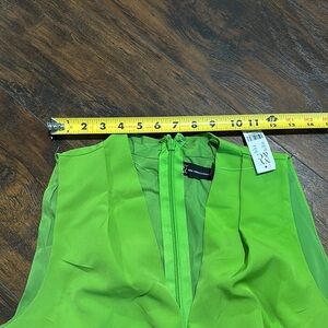 Vibrant neon green jumpsuit. Sleeveless design. Perfect for a bold look.