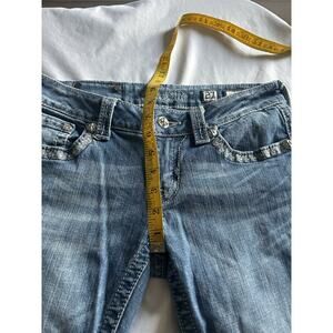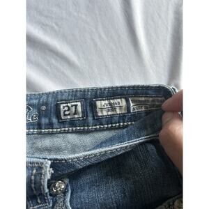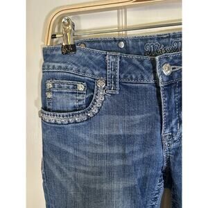 Miss Me Boot Cut Frayed Hem Jeans Womens Size 27 Blue Bling Rhinestone Cowgirl