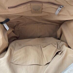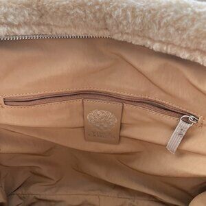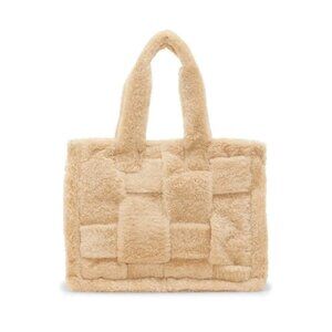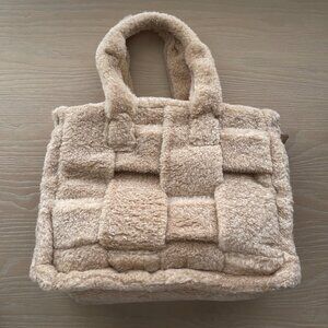 Plush strips of faux shearling in a fuzzy, oversized weave elevate this lightly structured tote with a roomy interior. Pre-owned, exterior is clean but shape has softened. Small spot in lining.