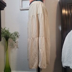 Midnight Sky Large Beige Linen Tiered Button Front Prairie Midi Skirt
