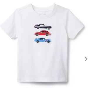 Fast-track their style with our soft jersey tee featuring embroidered race cars.