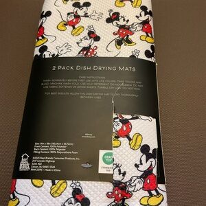 NWT Set of two dish mats featuring Mickey Mouse. Vibrant red and yellow design. Perfect for kitchen use. 16” x 18” made with thick, cushioned microfiber to soak up moisture.