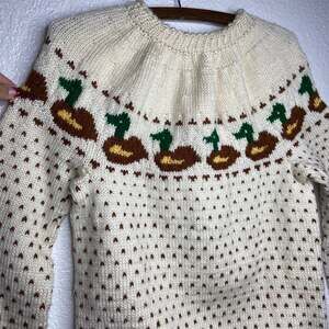 Vintage Handmade Knit Cream Mallard Sweater