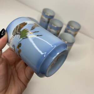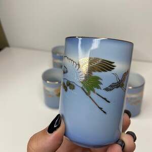 Vintage 6pc Japanese Gold Crane Blue Tea Cup
