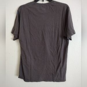 Very good condition, lighter grey multicolor T-shirt with image of an ice cream cone and text on a multicolor background. 100% cotton. Cute, casual, laidback, funny, foodie, colorful