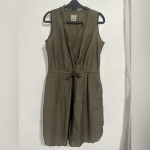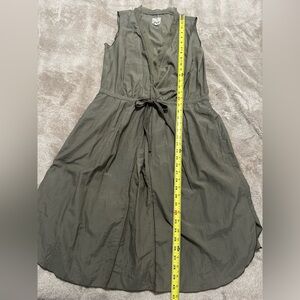 GO by GoSilk Olive Green Silk Blend Sleeveless Wrap Dress Tie Waist, Small