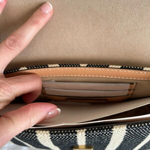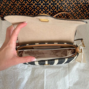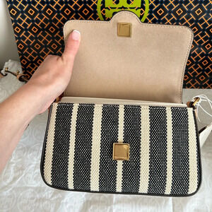 Tory Burch Felix Striped Canvas Mini Flap Shoulder Bag Crossbody Canvas Black