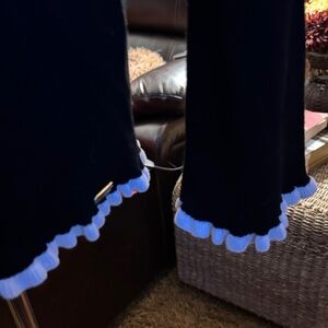 Calvin Klein Black Turtleneck Sweater white ruffle trim at neck cuffs bottom XL