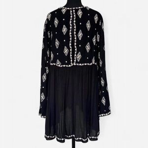 Free People Black and White Diamond Embroidered Boho Tunic - NWOT/Size Small