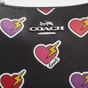 Coach Teri Shoulder Black Bag With Heart Bolt Print