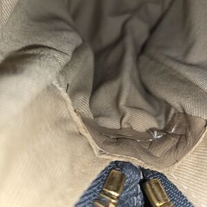 • Interior: Small corner rip in fabric lining, professionally repaired by a cobbler; faint marks only, no odors