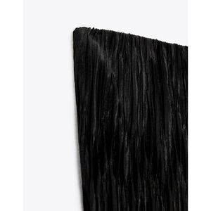 NWT ZARA Black High Waisted Crinkled Wrinkled Effect Bodycon Pull On Midi Skirt