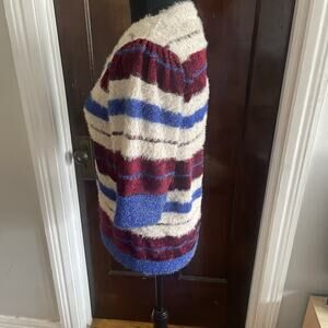 Sparkly red cream blue striped short sleeve fuzzy cardigan