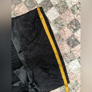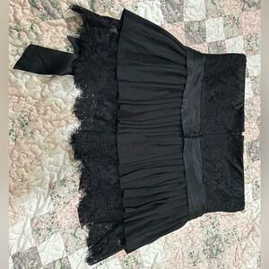Elegant black strapless top with ruffle and lace detailing. Features a stylish tie around bow accent. Perfect for any occasion. This top can also be worn as a skirt.. In great condition! Item is sold as is - Please see photos for measurements. Color of item in photos may differ once in person.