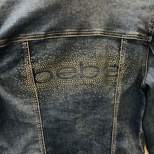 Vintage Y2K BEBE Lucia Wash Denim Jacket M Rhinestone Logo Fitted Stretch Jean