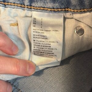 These American Eagle Outfitters jean shorts boast a trendy distressed look with a frayed hem and a classic blue wash. Perfect for casual outings, they offer a comfortable fit with a stylish worn-in appearance.