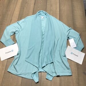 Athleta Cardigan Pranayama Wrap Womens Size 2X Green Relaxed Open Front Cozy NEW
