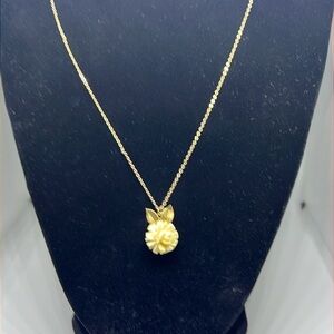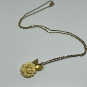 Signed Krementz celluloid white rose pendant necklace.