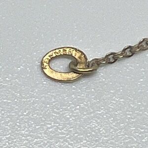 Gold tone chain measures 17”.