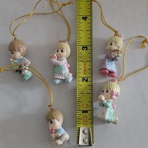 Vintage Precious Moments Mini Christmas Tree Ornament Set Lot Of 5 CUTE!