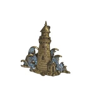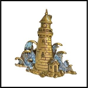 Keywords: lighthouse brooch, nautical pin, coastal jewelry, ocean brooch, sea waves pin, lighthouse jewelry, vintage brooch, gold tone brooch, statement brooch, OJJ brooch, beach themed jewelry, nautical gift, coastal accessory, lighthouse collector