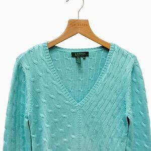 Ralph Lauren Vintage Cable Knit Sweater Silk Sweater Blue Women’s Size XS