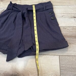 2Bella dark gray dress shorts with belted waist band, side button closure, faux back pocket, high waist, S.