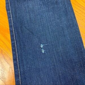 Excellent used condition size 30. Dark wash. One small imperfection on back of leg as shown in photos. Measurements are included in photos.