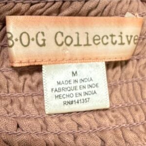 Brand new without tags Band of Gypsies (B.O.G Collective) smocked bustier crop top. Brown mauve beige base with soft floral print, structured front cups, adjustable straps, and a fully smocked stretchy back for a flattering, flexible fit. Lightweight and perfect for festivals, beach days, vacations, or layering.