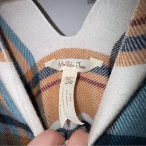 Matilda Jane Plaid Cream Blue Button Down Paige Ruana Shawl Poncho OS one size