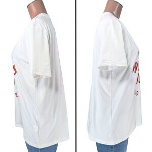 women's white crewneck short sleeve t-shirt w/red screenprint "I support women's rights & wrongs"