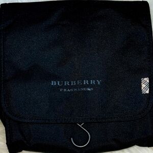 Sophisticated Burberry toiletry bag. Sleek design with iconic branding. Ideal for travel.