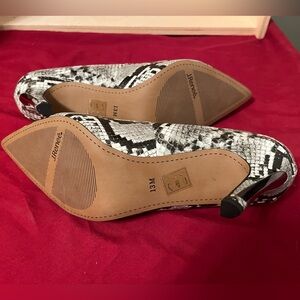 Step out in style with these chic snakeskin patterned pumps. These shoes offer a bold and fashionable look. Size 13 Heel Height 3.25 inches Worn once.