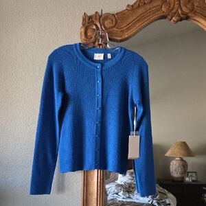 Chic navy and white stripes. Button-down front with tie detail. Perfect for casual outings.