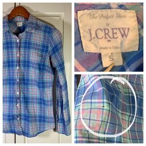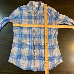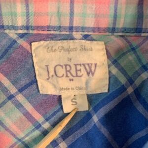J. Crew Perfect Shirt Womens Blue Pink Green Plaid Button Down Casual Size S