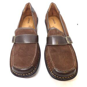 St. Johns Bay Brown Suede Leather Upper Balance Slip On Shoe with Accent Buckle Size 10W #RAE 024 2261 New Never Worn No Box .