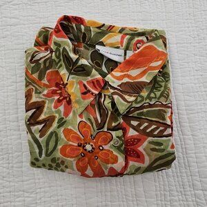 Alfred Dunner Top Women's 18 Green Orange Floral Fall Leaves Button Down Shirt