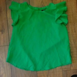 Elevate your style with this vibrant kelly green blouse top featuring elegant ruffle sleeves. Perfect for any occasion.Armpit to the armpit is 20 inches, and the length is roughly 22 inches.