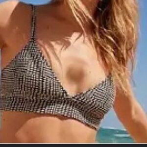 Black & White Checkered Triangle Bikini Top Minimalist Swim XL